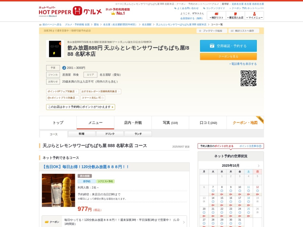 - ぱちぱち屋名駅店:当日予約可能、特に22時以降は比較的空いていることが多い